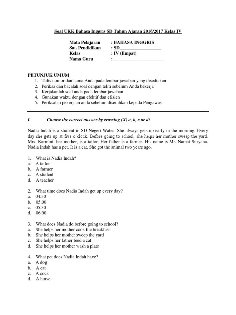 Ċ, soal uas semester 1 bahasa inggris . Ulangan kenaikan kelas pkn kelas 3 sd/mi i. Prediksi soal latihan pat (ukk) sd mi kelas 3 bahasa inggris kurikulum 2013 tahun 2021. Jean pergi ke kota c. Mother is cooking cake in the.